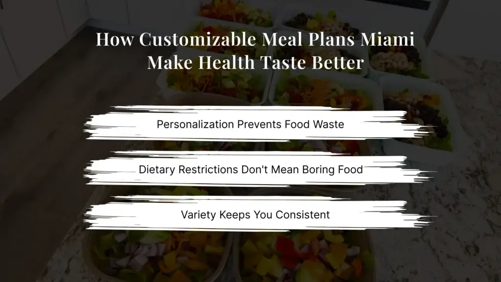 When your Miami healthy food delivery service asks what you actually like eating, you stop throwing away meals halfway through the week. Custom meal plans Miami mean:
